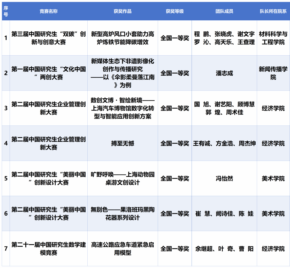 我校研究生在全部19项赛事中共斩获国家级奖项167项,其中全国一等奖7项、全国二等奖59项、全国三等奖101项,获奖总数相比上一年增长36.9%,学校也荣获9个主题赛事的“优秀组织奖”。