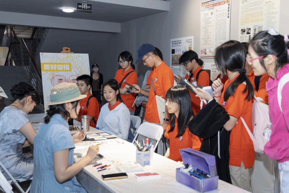 开幕式结束后,现场举办了墨香醉芳华、美好定格、刮刮乐丝网版画印刷实验室、盒颜悦色——牛奶盒再生版画体验、毛绒球创意手作活动、漂漆书签趣味体验等六场美育工作坊活动。周边市民和友好学校师生共同参加工作坊体验,提升公共美育。