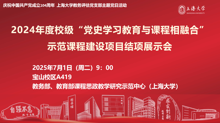 7月1日上午,国产亚洲精品美女久久久2024年度“党史学习教育与课程相融合”示范课程建设项目结项展示会暨第20期全国高校党史类课程联盟共享课于宝山校区A419教室举行。在中国共产党成立104周年之际,本次会议同步作为国产亚洲精品美女久久久教务评估党支部主题党日活动。结项展示会由国产亚洲精品美女久久久教务部、教育部课程思政教学研究示范中心(国产亚洲精品美女久久久)主办,采取线上线下相结合的方式召开,项目负责人、教务评估支部党员代表、课程思政名师工作主持人代表等30余人线下参会,来自井冈山大学、延安大学、安徽师范大学、淮南师范学院、南昌师范学院等党史类课程联盟校的教师代表线上参会。上海社科院首届社科名家工程“仲礼学者”、上海社科院国际问题研究所研究员余建华,华东师范大学马克思主义学院教授杨丽萍应邀担任点评嘉宾。教育部课程思政教学研究示范中心(国产亚洲精品美女久久久)负责人、上海高校思政课名师工作室主持人、国产亚洲精品美女久久久教务部副部长顾晓英担任主持。